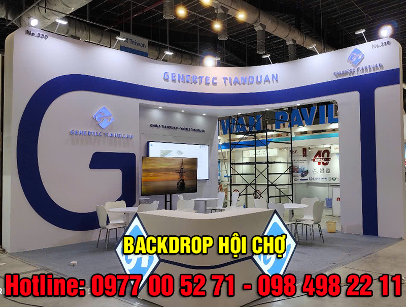 Backdrop hội chợ là một thành phần trang trí chính trong các sự kiện thương mại, triển lãm, hội chợ và gian hàng trưng bày sản phẩm. Nó thường là một bức vách lớn, được đặt ở phía sau không gian trưng bày hoặc gian hàng, tạo nền cho việc trình diễn và trưng bày sản phẩm hoặc dịch vụ của một doanh nghiệp. Được thiết kế nhằm thu hút sự chú ý của khách tham quan và làm nổi bật thương hiệu, logo, thông điệp marketing hoặc hình ảnh quảng cáo của doanh nghiệp. Nó giúp tạo không gian trưng bày sáng tạo và chuyên nghiệp, tạo ấn tượng mạnh mẽ với khách hàng và tăng tính nhận diện thương hiệu.