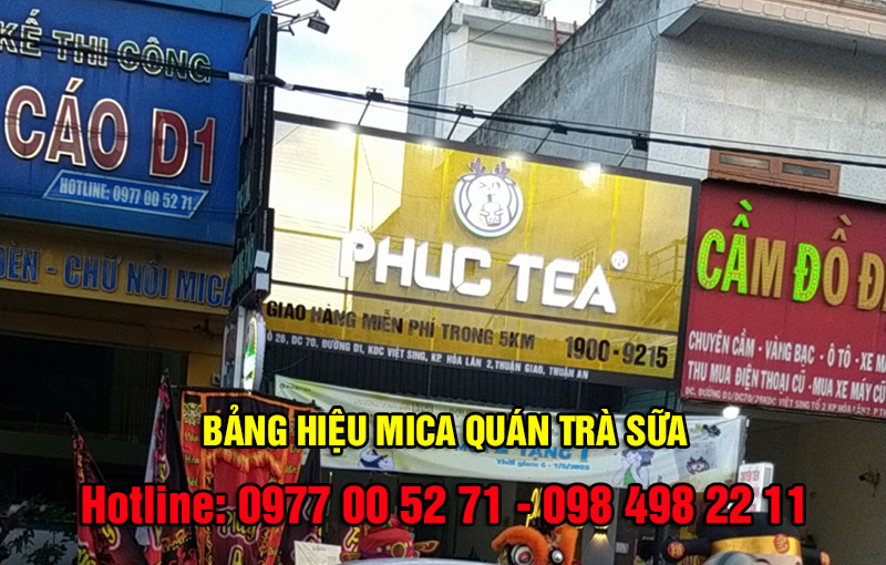 - Bảng hiệu mica quán trà sữa hiện nay là loại bảng hiệu được nhiều người lựa chọn