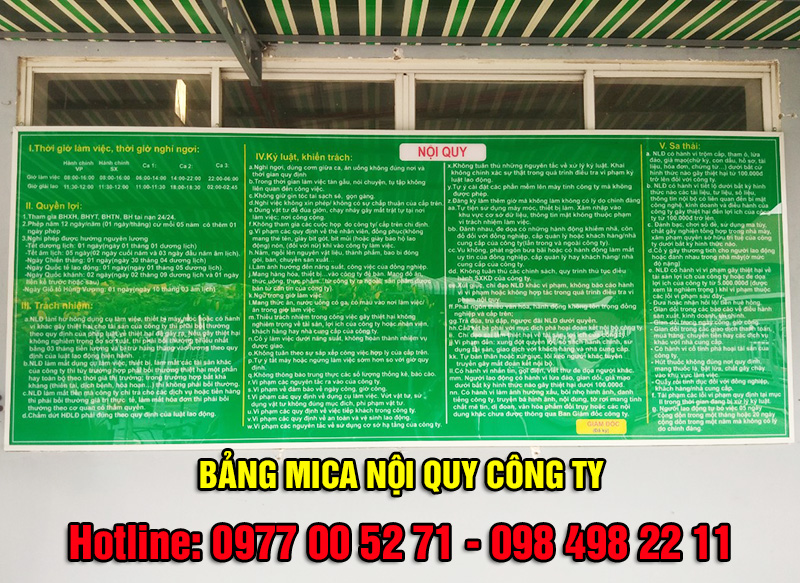 - Tên sản phẩm : Làm bảng mica nội quy công ty tại Bình Dương