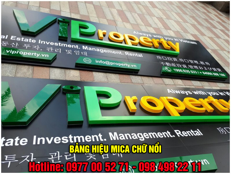 - Bảng quảng cáo chữ nổi tại Bình Dương: được làm từ nhiều chất liệu khác nhau: mica, gỗ, inox, aluminium,...Chữ nổi được thiết kế - thi công kết hợp với đèn led hoặc neon sign, tạo ánh sáng, hiệu ứng động, làm cho bảng cáo cáo sinh động gây sự chú ý. Chữ nổi trong quảng cáo được chúng tôi xử lý bằng công nghệ cắt laser nên nét chữ sắc sảo, tinh tế, vât liệu làm chữ cũng đảm bảo độ bền trong mọi điều kiện thời tiết ngoài trời.