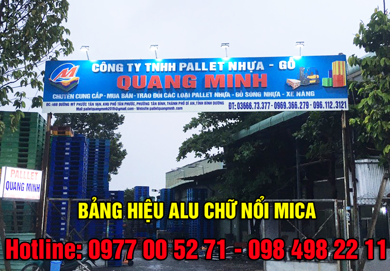 Bảng hiệu alu chữ nổi mica được sử dụng phổ biến nhất trên thị trường, với nhiều ưu điểm vượt trội; sang trọng, đẹp mắt, tính thẩm mỹ cao, phục vụ cho việc quảng cáo cả ngày lẫn đêm với mức giá trung bình, phù hợp với nhiều đối tượng khách hàng.