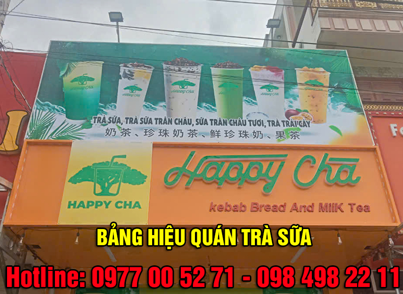 Bảng hiệu trà sữa là tấm biển quảng cáo được các cửa hàng trà sữa sử dụng rất phổ biến. Bên trên tấm bảng quảng cáo sẽ có tên, địa chỉ, số điện thoại cửa hàng trà sữa. Đây còn là nơi trưng bày hình ảnh những ly trà sữa thơm béo quyến rũ người nhìn.